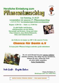Am 11.10.2025 ab 12 Uhr findet der 17. Pflanzentauschtag statt. Ausser der Möglichkeit Pflanzen zu tauschen gibt es einen Stand mit FIMO-Schmuck, Marmeladen, Liköre, Säfte, Seifen,…. Bücherflohmakt und Dekoartikeln. Natürlich Getränke, Kaffee und Kuchen. Wir freuen uns auf euch.